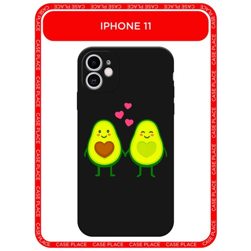 Черный матовый чехол на Apple iPhone 11 / Айфон 11 с принтом Авокадная любовь