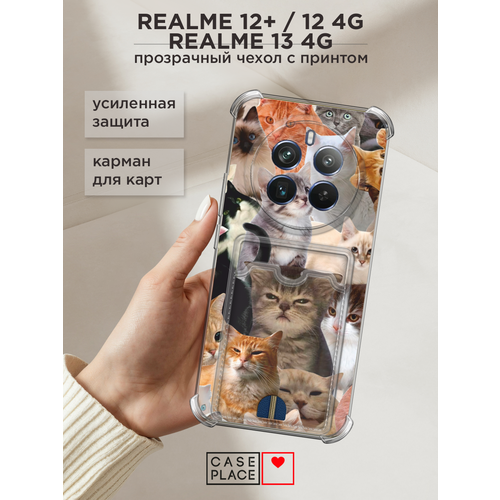 Чехол на Realme 12+/12 4G/13 4G (Реалми 12 Плюс/12 4G/13 4G) с картой и принтом Мемные коты