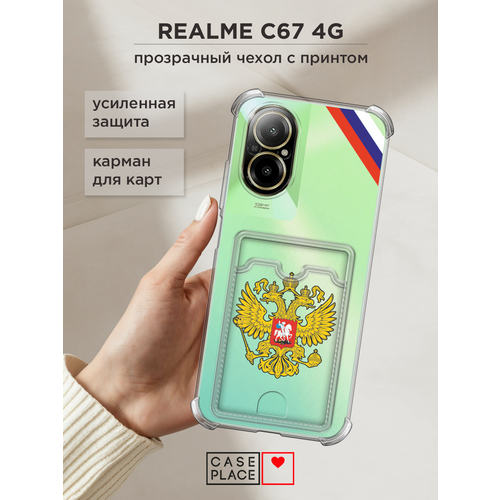 Чехол на Realme C67 4G (Реалми C67 4G) с картой и принтом "С гербом России"