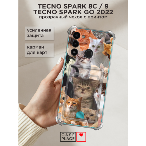 Чехол на Tecno Spark Go 2022/8C/9 (Текно Спарк Го 2022/8C/9) с картой и принтом Мемные коты