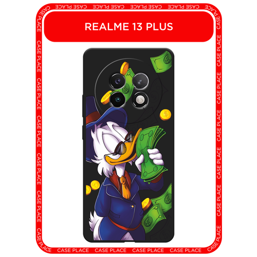 Черный матовый чехол на Realme 13+ / Реалми 13+ с принтом Scrooge McDuck with Money