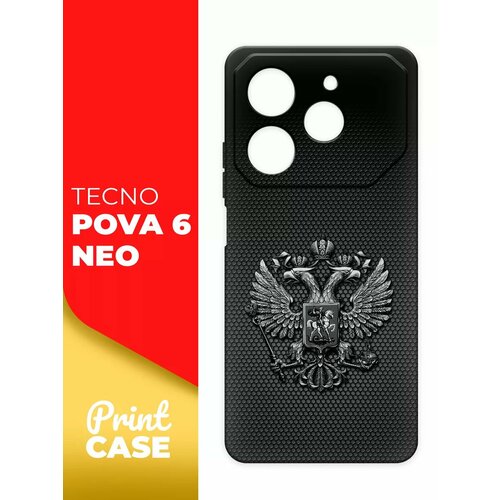 Чехол на Tecno Pova 6 Neo (Техно Пова 6 Нео) черный матовый силиконовый с защитой (бортиком) вокруг камер, Miuko (принт) Герб карбон