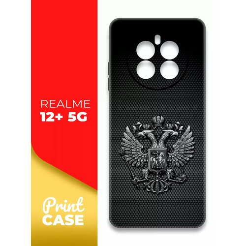 Чехол на Realme 12+ 5G (Реалми 12+ 5г) черный матовый силиконовый с защитой (бортиком) вокруг камер, Miuko (принт) Герб карбон