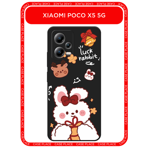 Черный матовый чехол на Xiaomi Poco X5 5G / Сяоми Поко X5 5G с принтом Праздничный кролик рисунок 2