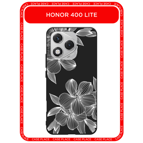 Черный матовый чехол на Honor 400 Lite / Хонор 400 Лайт с принтом Крокус