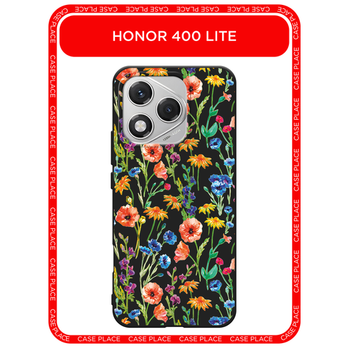 Черный матовый чехол на Honor 400 Lite / Хонор 400 Лайт с принтом Маки и васильки фон