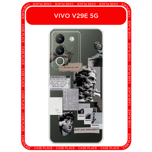 Чехол на Vivo V29e 5G / Виво V29e 5G с принтом Коллаж греческие скульптуры, прозрачный