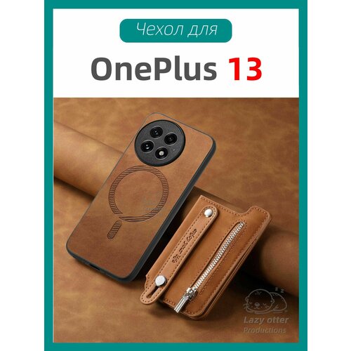 Чехол для OnePlus 13 с поддержкой MagSafe, искусственная кожа, с отделением для карт.