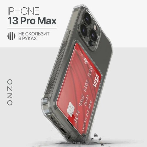 Противоударный чехол картхолдер на iPhone 13 Pro Max / Айфон 13 Про Макс бампер прозрачный