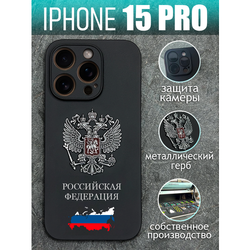 Чехол на iPhone 15 Pro с серым металлическим Гербом, Айфон 15 Про