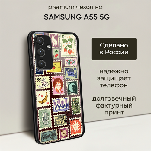 Чехол на Samsung Galaxy A55 5G / Самсунг Галакси А55 5G с объемным принтом "Коллаж с марками"