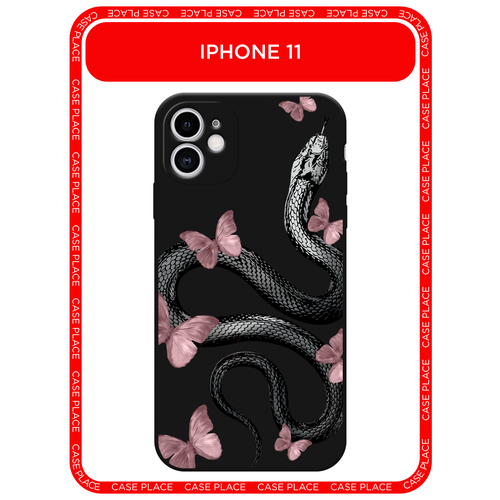 Черный матовый чехол на Apple iPhone 11 / Айфон 11 с принтом Змейка с бабочками