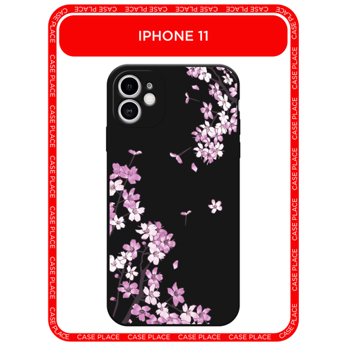 Черный матовый чехол на Apple iPhone 11 / Айфон 11 с принтом Сирень рисунок