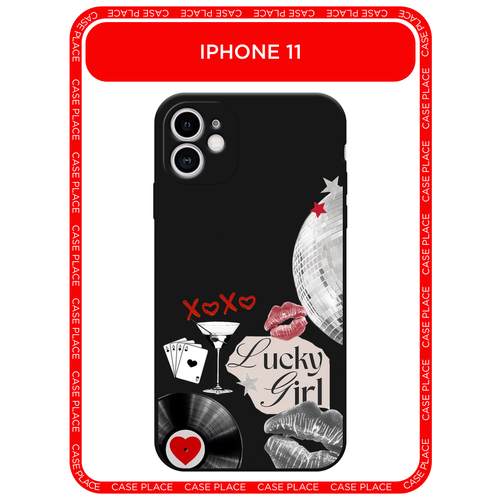 Черный матовый чехол на Apple iPhone 11 / Айфон 11 с принтом xoxo lucky girl
