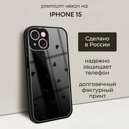 Чехол на Apple iPhone 15 / Айфон 15 с объемным принтом "Маленькие чёрные сердечки"