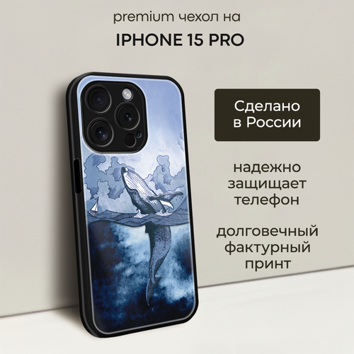 Чехол на Apple iPhone 15 Pro / Айфон 15 Про с объемным принтом "Небесный кит"