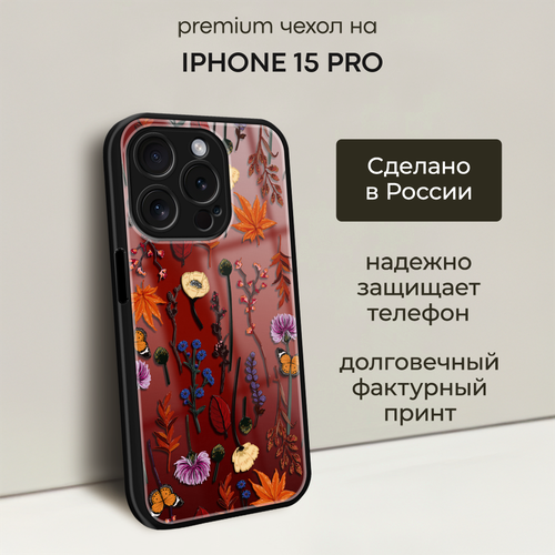 Чехол на Apple iPhone 15 Pro / Айфон 15 Про с объемным принтом "Осенние цветы"