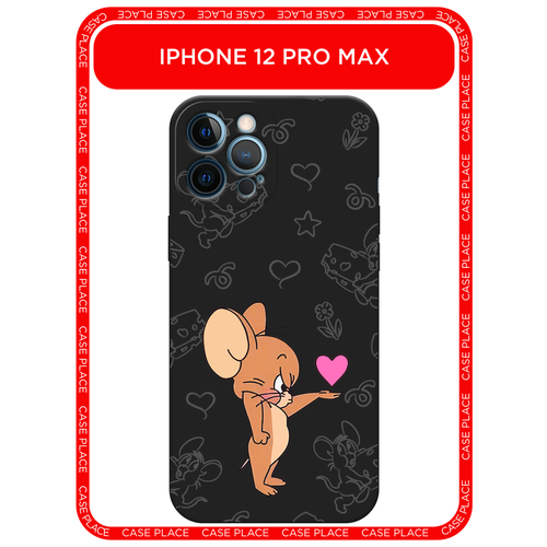 Черный матовый чехол на Apple iPhone 12 Pro Max / Айфон 12 Про Макс с принтом Джерри и сердце 2