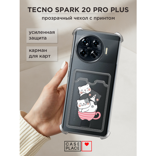 Чехол на Tecno Spark 20 Pro Plus (Текно Спарк 20 Про Плюс) с картой и принтом Коты в чашке