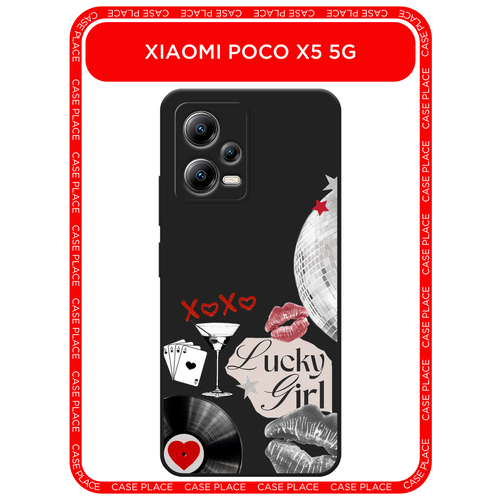 Черный матовый чехол на Xiaomi Poco X5 5G / Сяоми Поко X5 5G с принтом xoxo lucky girl