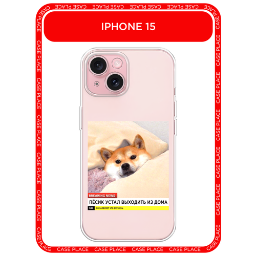Чехол на Apple iPhone 15 / Айфон 15 с принтом Уставший песик, прозрачный