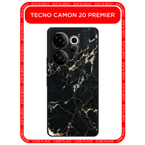 Черный матовый чехол на Tecno Camon 20 Premier / Техно Камон 20 Премьер с принтом Черный мрамор уголок