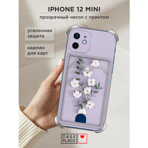 Чехол на Apple iPhone 12 mini (Айфон 12 Мини) с картой и принтом Веточка хлопка