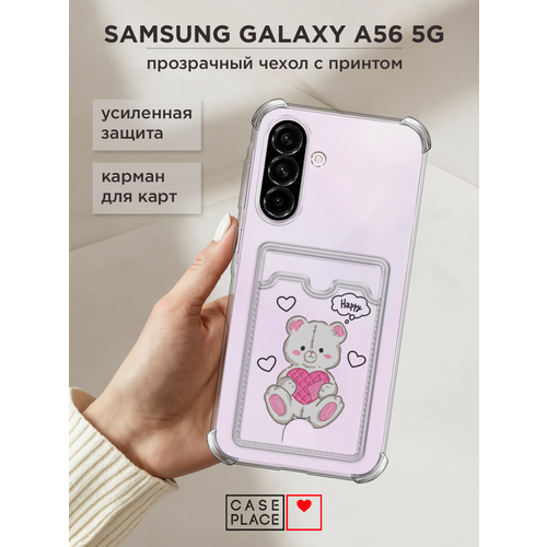 Чехол на Samsung Galaxy A56 5G (Самсунг Галакси А56 5G) с картой и принтом Милый мишка с сердечком