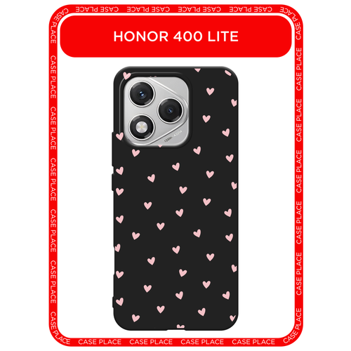 Черный матовый чехол на Honor 400 Lite / Хонор 400 Лайт с принтом Розовые сердечки паттерн
