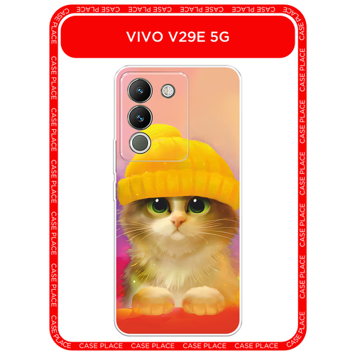 Чехол на Vivo V29e 5G / Виво V29e 5G с принтом Котенок в желтой шапке