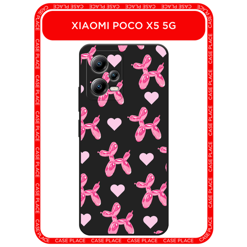 Черный матовый чехол на Xiaomi Poco X5 5G / Сяоми Поко X5 5G с принтом balloon dogs pink