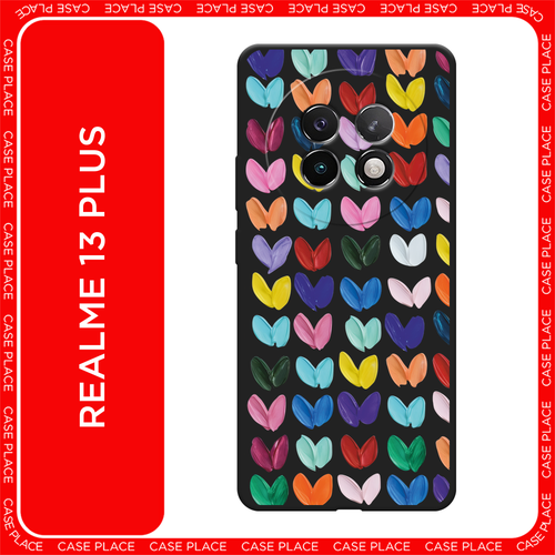 Черный матовый чехол на Realme 13+ / Реалми 13+ с принтом Сердечки из краски