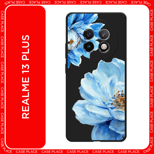 Черный матовый чехол на Realme 13+ / Реалми 13+ с принтом Голубые клематисы