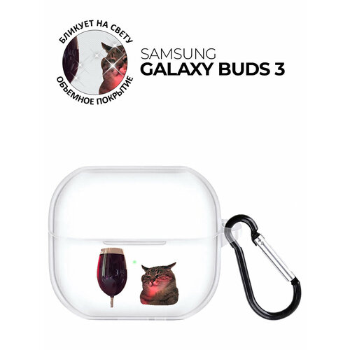 Чехол на Samsung Galaxy Buds 3 с принтом "Котик и вино" прозрачный