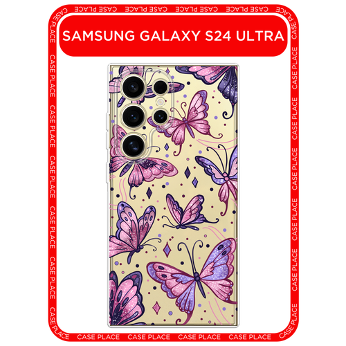 Чехол на Samsung Galaxy S24 Ultra / Самсунг S24 Ultra с принтом Фиолетовые бабочки, прозрачный