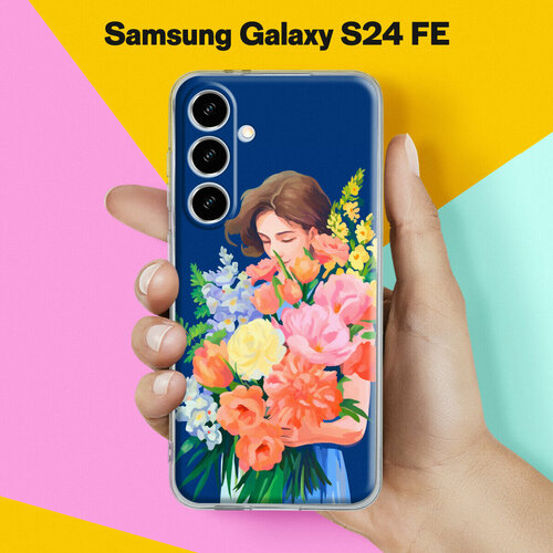 Силиконовый чехол на Samsung Galaxy S24 FE с принтом "Девушка С Цветами" с прозрачными бортиками