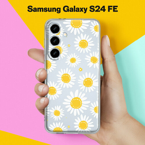 Силиконовый чехол на Samsung Galaxy S24 FE с принтом "Узор из ромашек" с прозрачными бортиками
