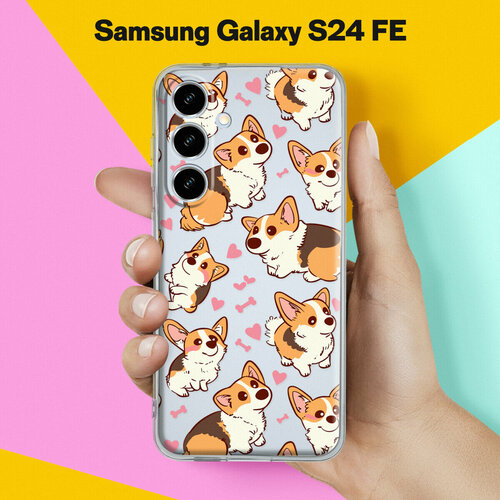 Силиконовый чехол на Samsung Galaxy S24 FE с принтом "Узор из Корги" с прозрачными бортиками