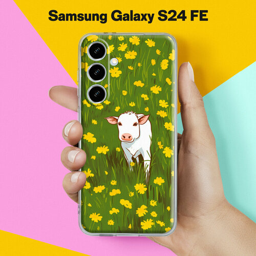 Силиконовый чехол на Samsung Galaxy S24 FE с принтом "Корова" с прозрачными бортиками