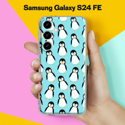 Силиконовый чехол на Samsung Galaxy S24 FE с принтом "Пингвины" с прозрачными бортиками