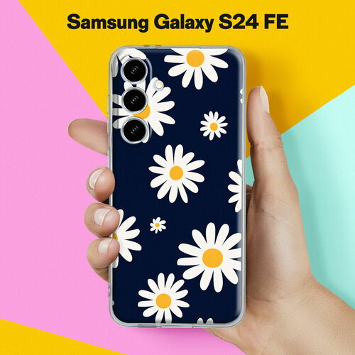 Силиконовый чехол на Samsung Galaxy S24 FE с принтом "Ромашки на Темном" с прозрачными бортиками