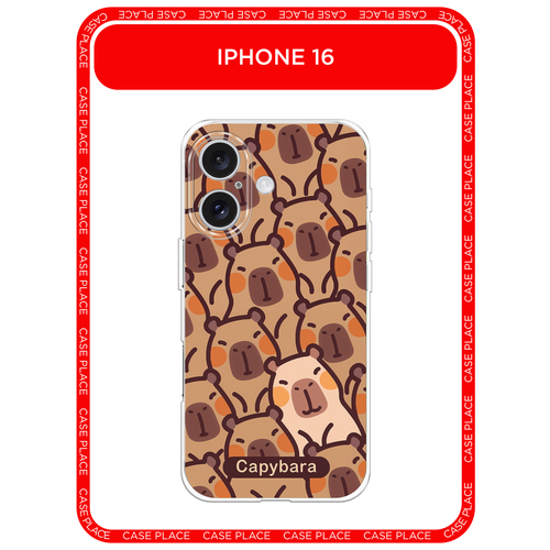 Силиконовый чехол на Apple iPhone 16 / Айфон 16 с принтом Толпа капибар