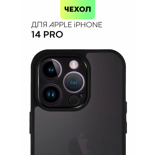 Пластиковый чехол BROSCORP на Apple iPhone 14 Pro (Айфон 14 Про), полупрозрачная чёрная матовая панель