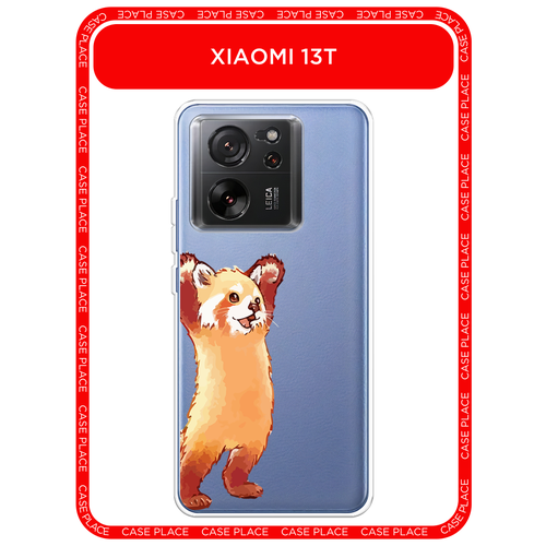 Чехол на Xiaomi 13T / Сяоми 13Т с принтом Красная панда в полный рост, прозрачный