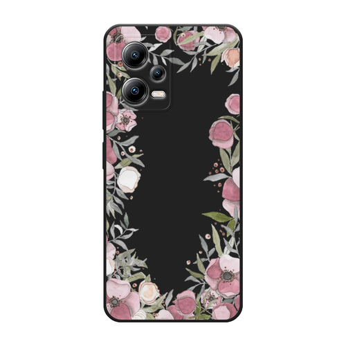 Матовый силиконовый чехол "Розовая цветочная рамка" на Xiaomi Poco X5 5G / Сяоми Поко X5 5G