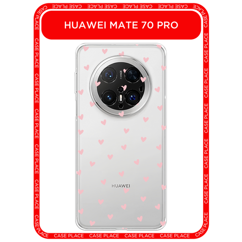 Чехол на Huawei Mate 70 Pro / Хуавей Мате 70 Про с принтом Розовые сердечки паттерн, прозрачный
