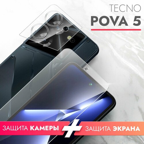 Защитное стекло для Tecno Pova 5 (Техно Пова 5) на Экран и Камеру, (гибридное: пленка+стекловолокно), прозрачное силиконовая клеевая основа тонкое Hybrid Glass, Brozo