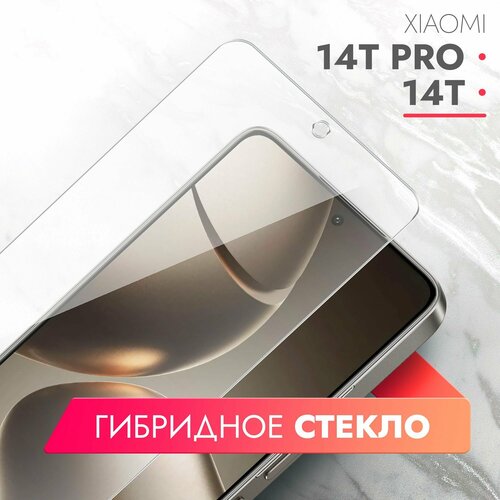 Защитное стекло для Xiaomi 14T (Ксиоми 14Т) на Экран, (гибридное: пленка+стекловолокно), прозрачное силиконовая клеевая основа тонкое Hybrid Glass, Brozo