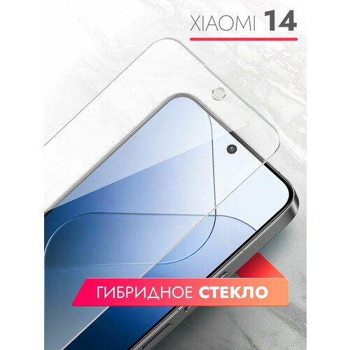 Защитное стекло для Xiaomi 14 (Ксиоми 14) на Экран, (гибридное: пленка+стекловолокно), прозрачное силиконовая клеевая основа тонкое Hybrid Glass, Brozo