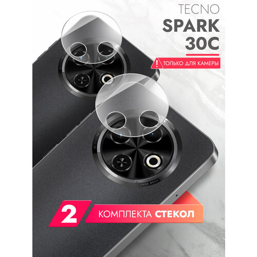 Защитное стекло на Камеру для Tecno Spark 30C (Техно Спарк 30С) , 2 штуки, (гибридное: пленка+стекловолокно), прозрачное силиконовая клеевая основа тонкое Hybrid Glass, Brozo